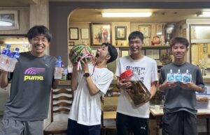 農大陸上部OBの木暮様より、スイカ、アクエリアス、エネルギゼリーの差し入れをいただきました!